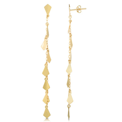 14K Gold Mirror Chain Diamond Shape Drop Earrings