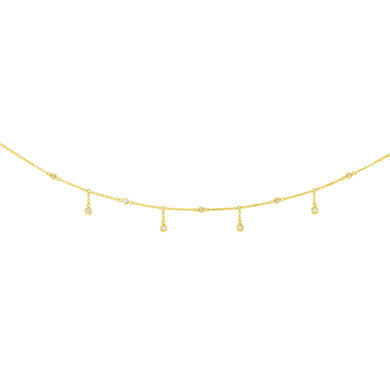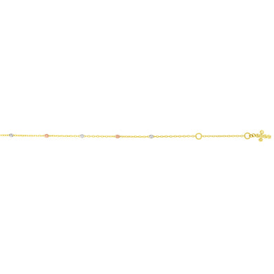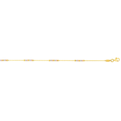 14K Tri-color Gold Diamond Cut Bead Station Anklet
