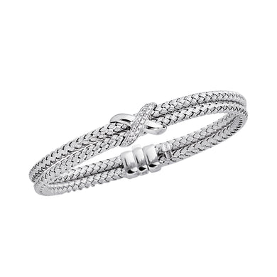 14K Gold .15ct Diamond X Station Woven Bangle