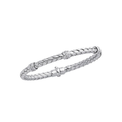 14K Gold .15ct Diamond Station Woven Bangle