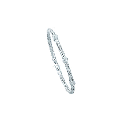 14K Gold .18ct Diamond Station Woven Bangle