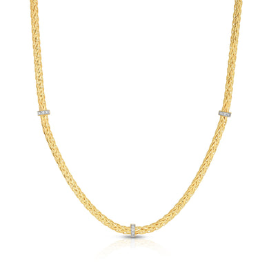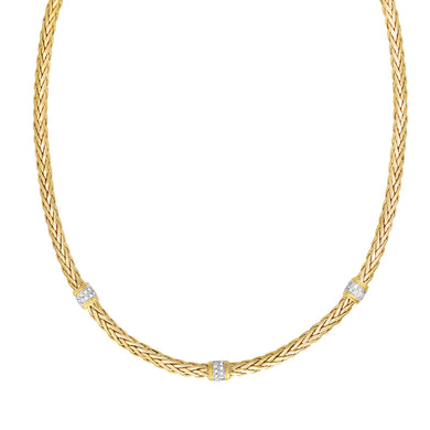 14K Gold Woven Stationed Diamond Necklace