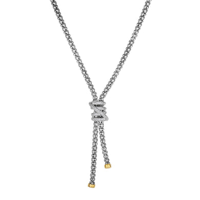 14K Gold Woven Lariat X Diamond Necklace