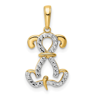 14k and White Rhodium Diamond-cut Sitting Puppy Pendant