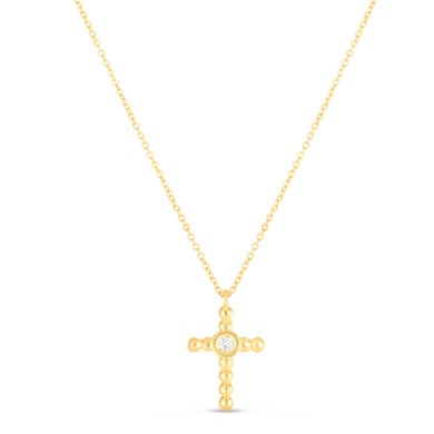 14K Gold Diamond Cross Popcorn Pendant
