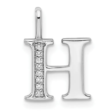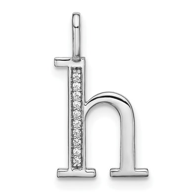 14K White Gold Diamond Lower Case Letter H Initial Pendant