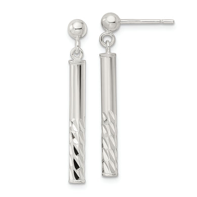 Sterling Silver Diamond-cut Bar Dangle Post Earrings