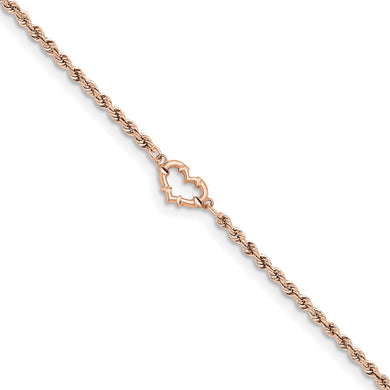 14k Rose Gold Diamond-cut Rope with Heart 10in Anklet