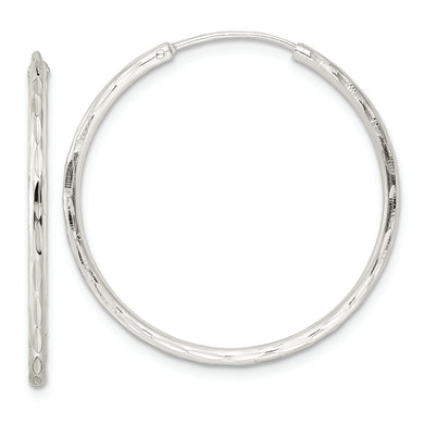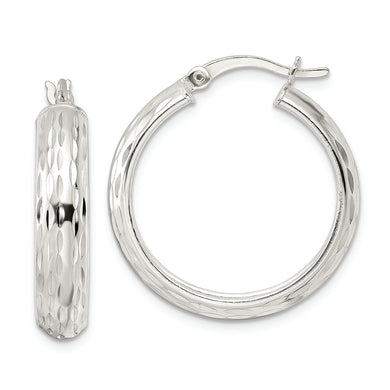 Sterling Silver Polished Diamond-cut 5x25mm Hoop Earrings
