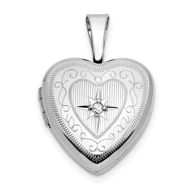 14k White Gold .01ct Diamond 15mm Heart Locket
