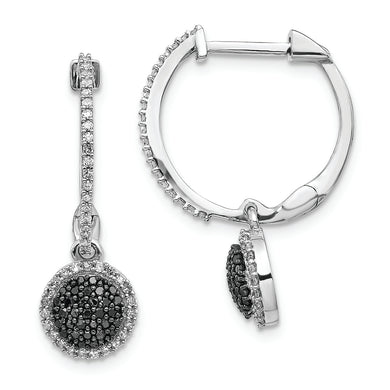 SS RH Plated White Night Black & White Diamond Hinged Hoop Earrings