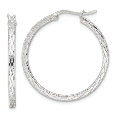 Sterling Silver Polished Diamond-cut Circle Hoop Earrings