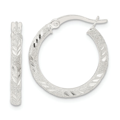 Sterling Silver Polished and Laser Diamond-cut Hoop Earrings