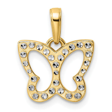 14k and White Rhodium Diamond-cut Butterfly Pendant