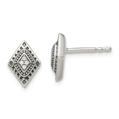 Sterling Silver Antiqued CZ Diamond-shape Post Earrings