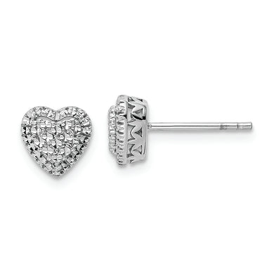 14k White Polished Diamond-cut Heart Post Earrings