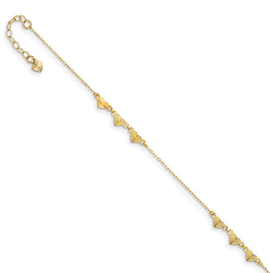 14K Diamond-cut Hearts 9in Plus 1in ext Anklet