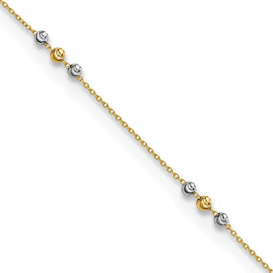 14K Two-tone Polished Diamond-cut Beaded 9in Plus 1 in ext. Anklet