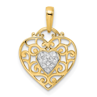 14k and White Rhodium Diamond-cut Filigree Heart Pendant
