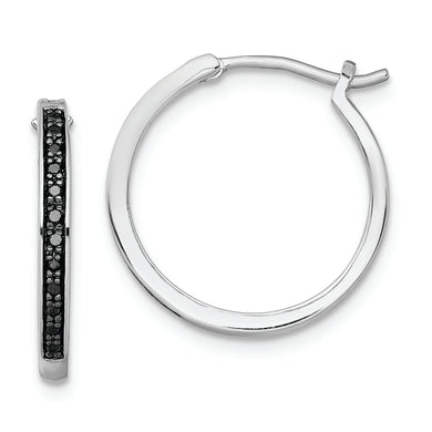 SS RH Plated White Night Black Diamond Hoop Earrings