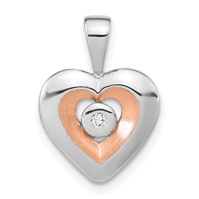 Sterling Silver RH-plated & Rose Gold-plated Diamond Heart Pendant