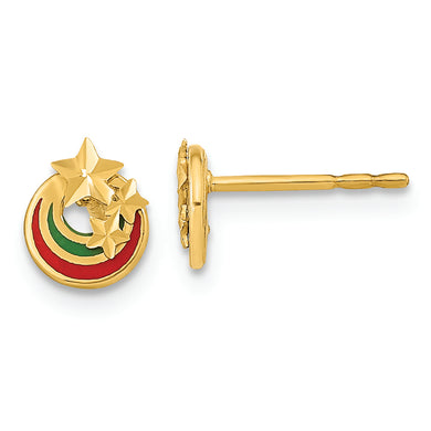14K Polished Enameled with Diamond Cut Stars Post Earrings