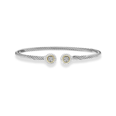 Sterling Silver & 18K Gold Italian Cable Diamond Filo Thin Cuff