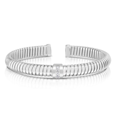 Silver Tubogas White CZ Cuff