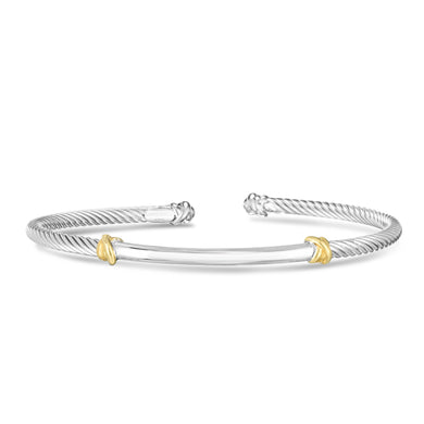 Silver & 18K Blue Topaz Cable Renaissance Bangle