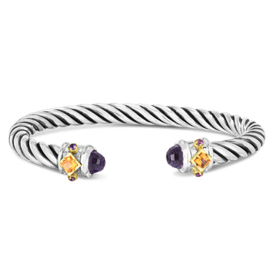 Silver & 18K Amethyst Cable Renaissance Bangle