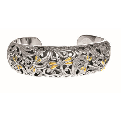 Sterling Silver & 18K Gold Italian Cable Cortina Cuff Bangle