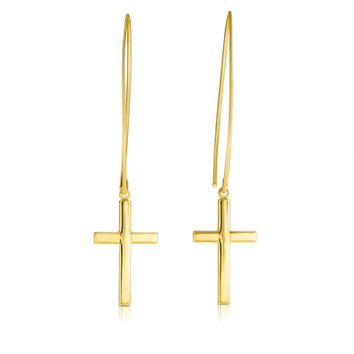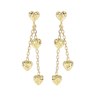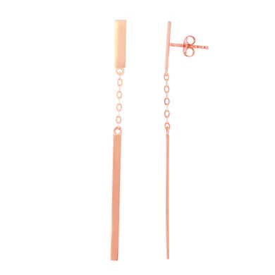 14K Gold Diamond Cut Bar Linear Drop Earring