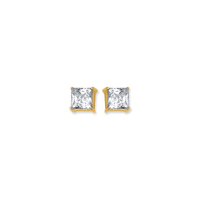 14K Gold 5mm Princess Cut CZ Stud Earring