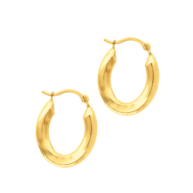 10K Gold Medium Oval Diamond Cut Hinged Hoop Earring