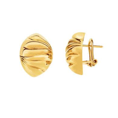 14K Gold Oval Diamond Cut Omega Back Hoop Earring