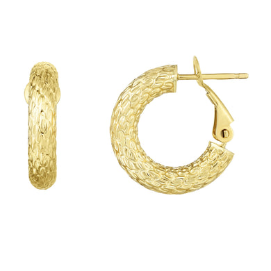 14K Gold Diamond Cut Medium Omega Back Hoop Earring