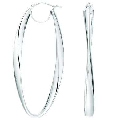 14K Gold Oval Diamond Cut Twist Omega Back Hoop Earring