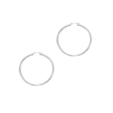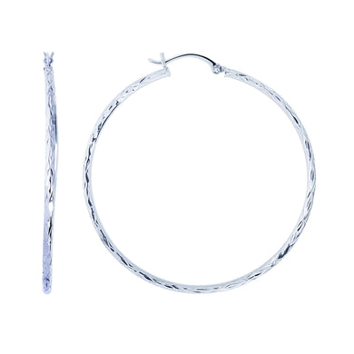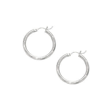 14K White Gold 3mm Diamond Cut & Polished Design Hoop Earring