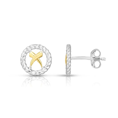 Sterling Silver & 18K Gold Italian Cable 'X' Studs