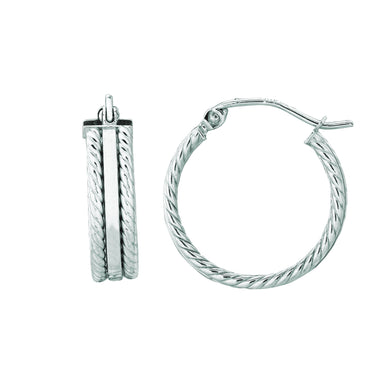 14K Gold Double Row Polished & Dimaond Cut Twist Hoop Earring