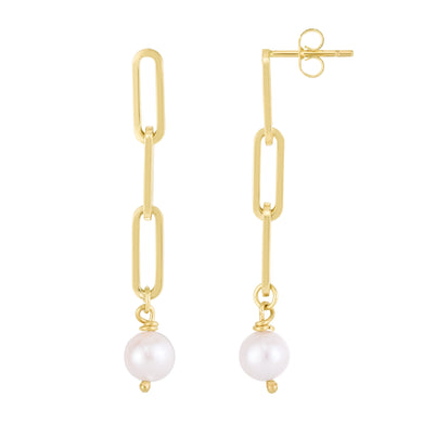 14K Pearl Paperclip Link Earrings