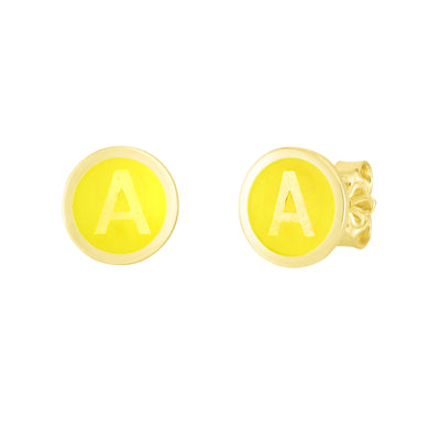 14K Yellow Enamel A Initial Studs