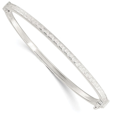 Sterling Silver Polished Textured Design Hinged Bangle