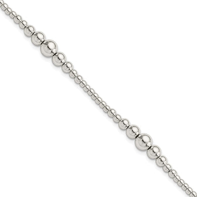 Sterling Silver Polished Beaded Adjustable Bracelet