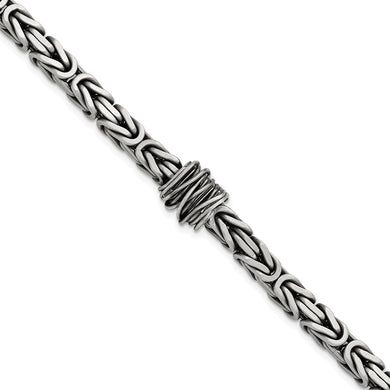 Sterling Silver Mens Antiqued Brushed Square Byzantine Bracelet