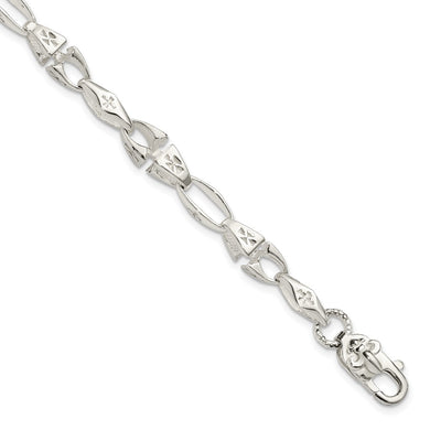 Sterling Silver Polished & Textured Tapered Link Bracelet