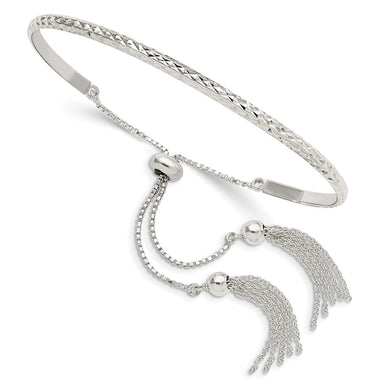 Sterling Silver Polished D/C w/tassels Adjustable Bangle