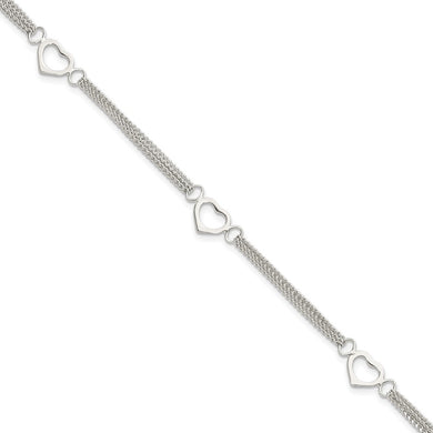 Sterling Silver Polished Multi-strand Heart 7in Bracelet