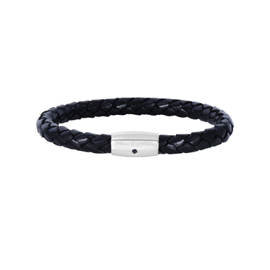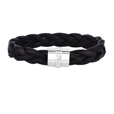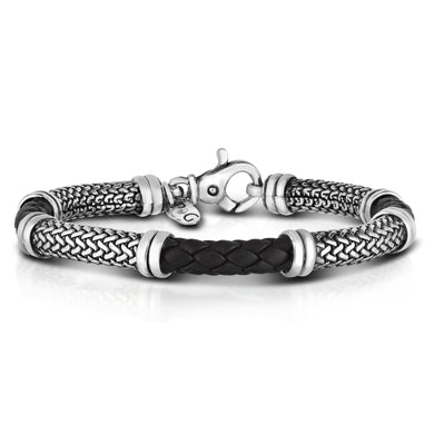 Sterling Silver Men's Twisted Cable Leather Bracelet