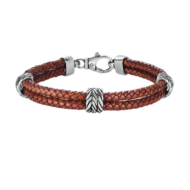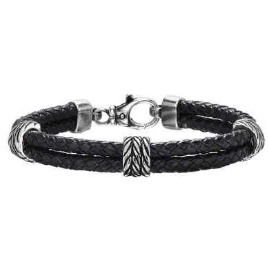 Sterling Silver Men's Textured Leather Double Strand Bracelet